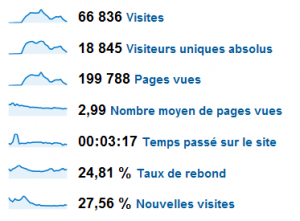 Je me demandais un peu ce que ça donnerait, et j’étais content en voyant les 100 ou 150 visites par jour alors que la date fatidique approchait, mais j’étais bien loin d’imaginer qu’il y aurait des pointes à plus de 6000 visites par jour !