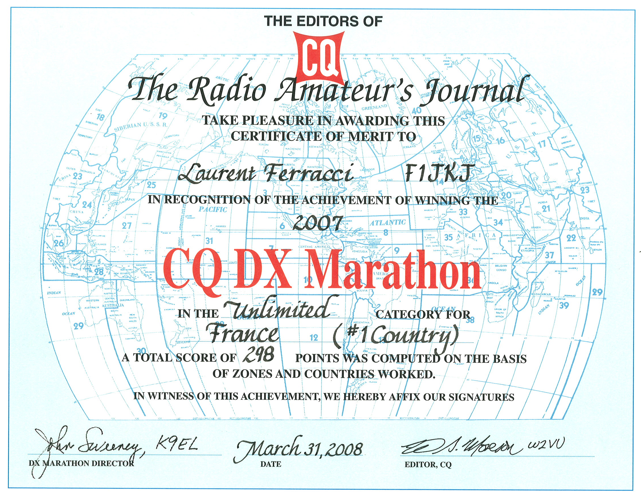 Additionnez les deux et vous aurez votre score au CQ MARATHON. Mi-contest, mi-diplôme, cette compétition existe depuis 2006 et brille par sa simplicité !