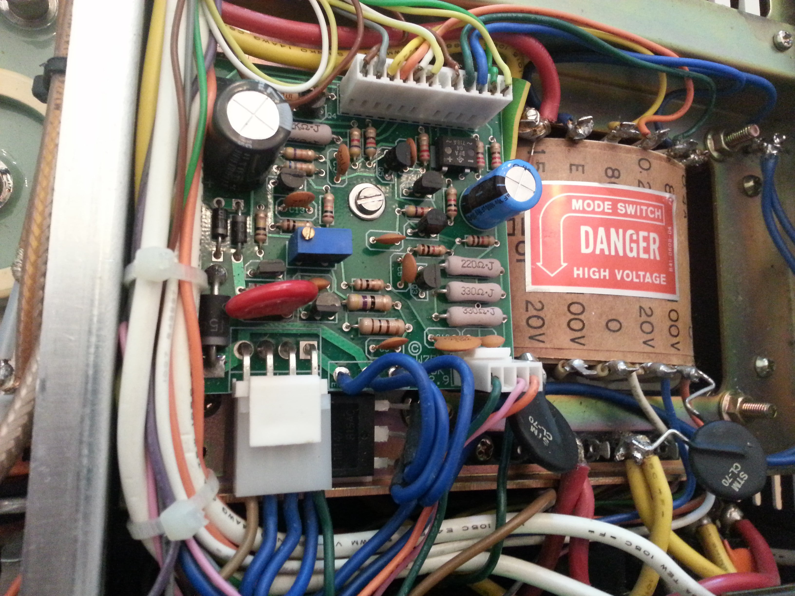 Hé bien ce n’est que cette semaine que le TL922 est revenu à la maison ! En effet, suite à la panne j’avais changé les tubes bien sur, mais je voulais profiter de l’occasion pour apporter quelques modifications à mon vénérable ampli. Ces modifs m’avaient demandé pas mal de travail et, une fois terminées… ben ça marchait pas… j’avais localisé le problème au niveau de la Haute Tension, et comme c’est une partie pour laquelle je ne suis absolument pas équipé, j’étais un peu coincé.