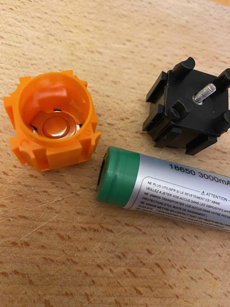 Je ne suis pas équipé pour souder ainsi, et je n’avais pas trop envie de souder mes accus, pour la même raison qui m’avait conduit à sélectionner les 18650, à savoir leur polyvalence.