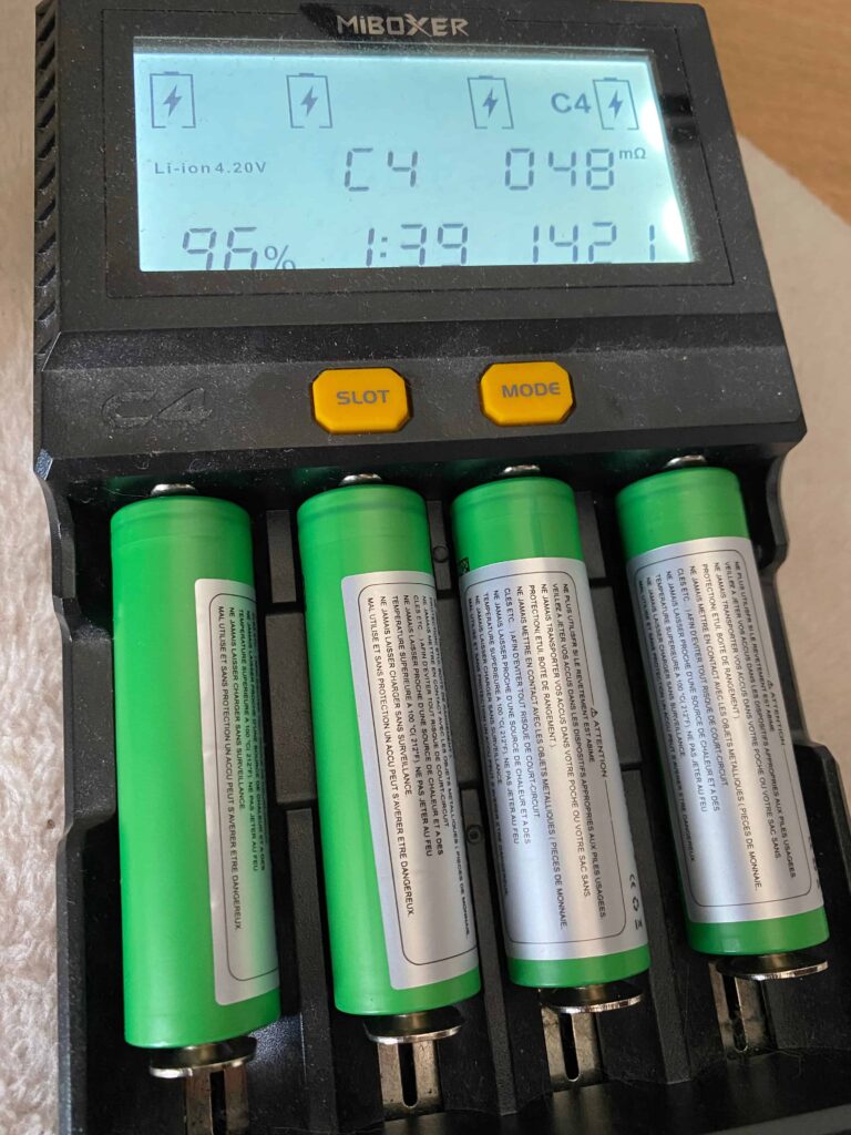 A l’arrivée je les ai chargés, et j’en ai profité pour tester la capacité réelle de quelques uns. Mon chargeur dispose de cette fonction intéressante qui réalise un cycle charger à fond / décharger à fond / recharger à fond, et qui détermine combien de mAh l’accu concerné peut stocker. On était pas vraiment aux 3000 mAh annoncés, mais plutôt 2700.