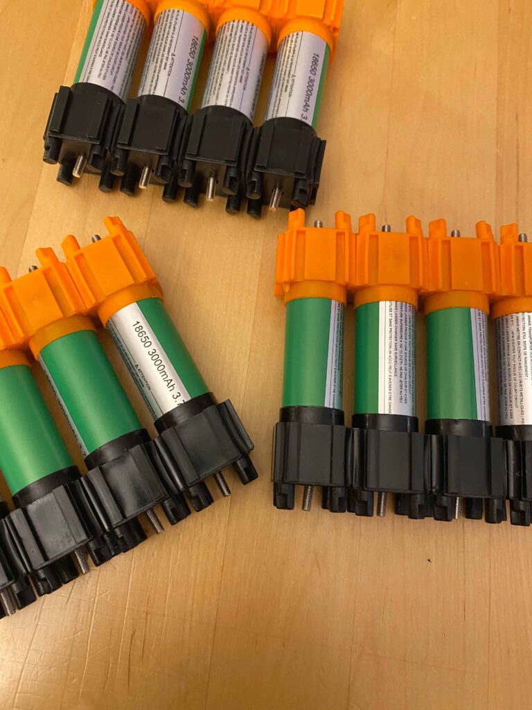Restait à choisir les caractéristiques de mon pack. Après avoir tourné le problème un peu dans tous les sens, j’ai pris le parti de rester simple et d’utiliser des accus que l’on trouve partout pour pas (trop) cher: Des lithium-ion de type 18650.