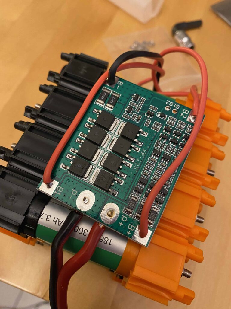 J’ai donc ajouté à mes accus une platine BMS destinée aux montages 3S, et connecté la platine aux quatre points de tensions (0, 4, 8 et 12V).